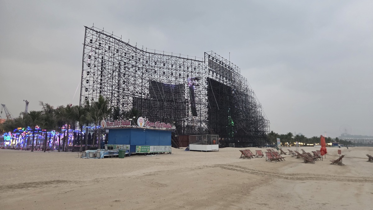 Wychodzimy wieczorem na spacer, idziemy na plażę przez wymarłe ulice i sklepiki wokół parku rozrywki i wielkiego placu budowy. Jest zdecydowanie poza sezonem. Na plaży są zbudowane dwie ogromne sceny, jakby tu był jakiś festiwal. W międzyczasie jeszcze podpytujemy o wycieczki i transport do Ha Giang, który pewnie będzie naszym kolejnym punktem na trasie, a o którym usłyszeliśmy dwa dni wcześniej na rejsie. Ostatecznie decydujemy się kupić wycieczkę u nas w hotelu. Nawet stwierdziliśmy, że weźmiemy droższą. Jakieś złotówki różnicy, a spodziewaliśmy się lepszego jedzenia i standardu.
