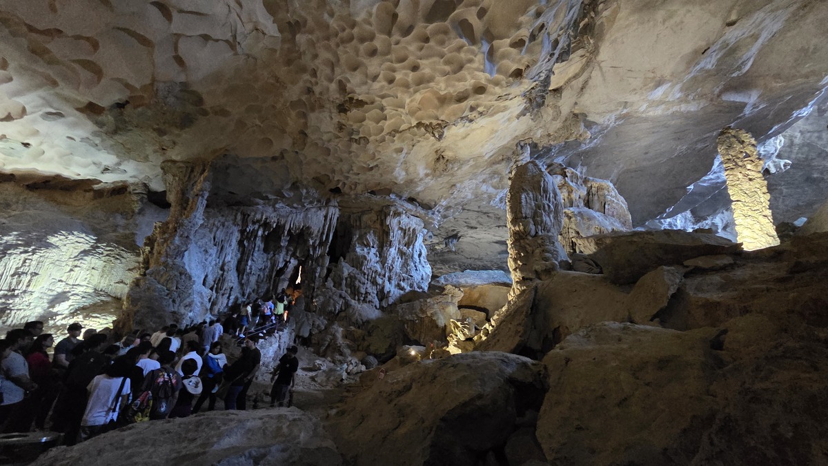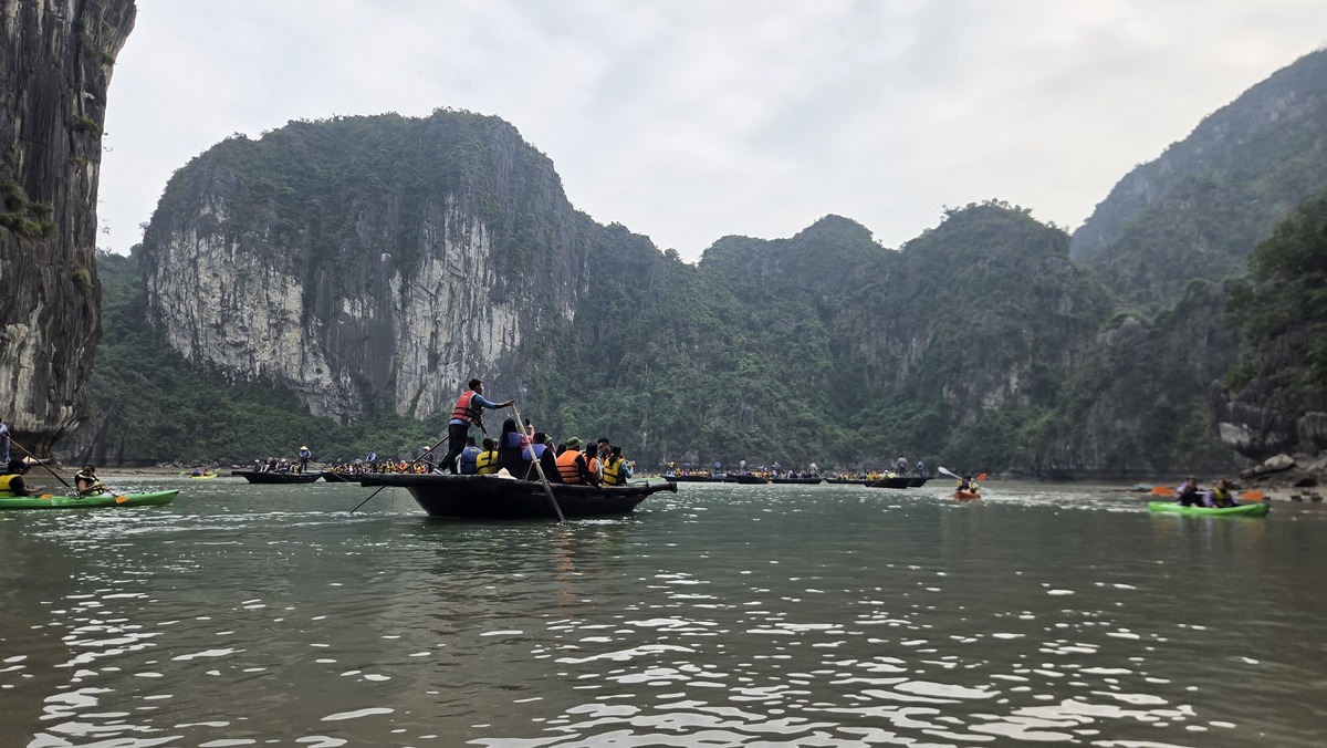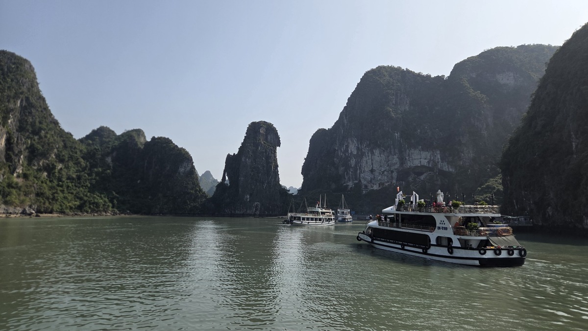 Po wypłynięciu dostaliśmy jakieś owocki i skierowaliśmy się w stronę portu. Nie polecam tej wycieczki bardzo, i żadnej innej z tego planu. Dlatego że są trzy atrakcje gdzie płyną wszyscy, to ruch się w ogóle nie rozkłada. Paradoksalnie jedyny argument za tym żeby popłynąć w te miejsca, to ich popularność 🤷♂️ Zdecydowanie lepszy klimacik był na Cat Ba. W Ha Long może są jakieś fajne wycieczki, które wpływają do jaskiń i są mniej oczywiste i tych bym polecał szukać.
