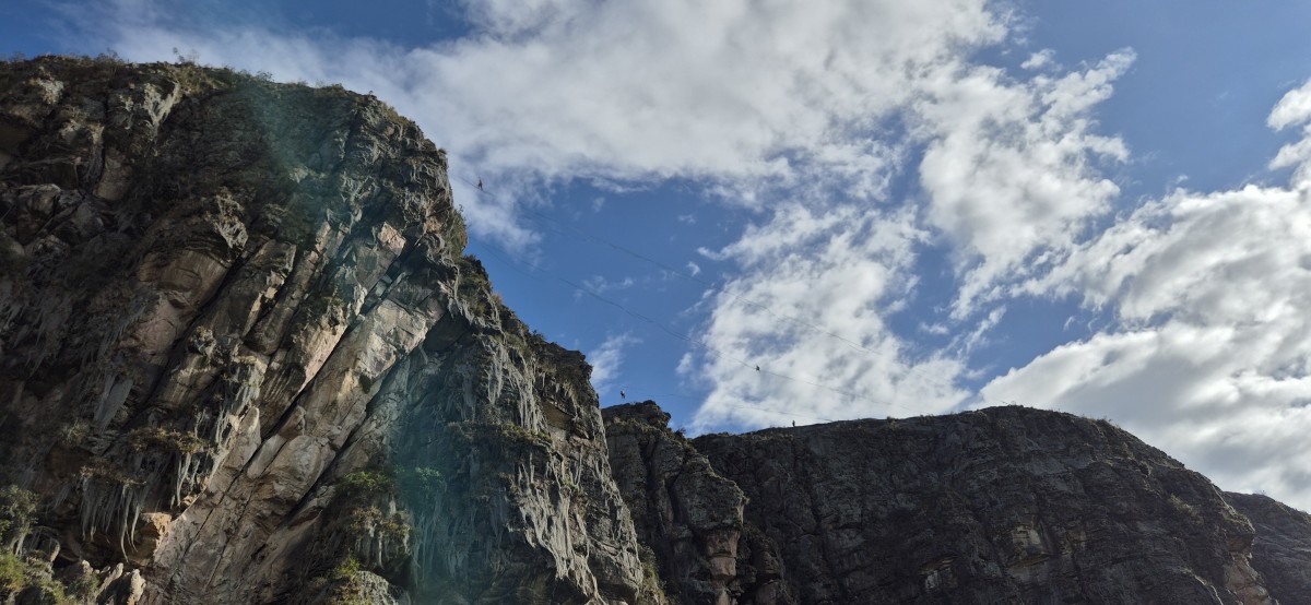 Wyjazd do Ameryki Południowej nie był zbyt highlineowy i miałem prawię półroczną przerwę od sportu. Dopiero w Kolumbii udało się złapać kontakt i tak na tydzień wylądowałem w Suesce. Uwielbiam ludzi ze środowiska highlineowego. Każdy tutaj wie z czym się wiąże chodzenie po taśmie i jak długą drogę i walkę z sobą trzeba odbyć. Tutaj ludzie nie oceniają, oni przede wszystkim wspierają. W czasie kiedy tam byłem, poznałem kilka osób, które okazały się legendami, lub co najmniej światowego formatu highlinerami. Pierwsze próby były stresujące, ale pamiętam jedną sesję, w której dostałem wsparcie i zachęty, spokojne, bez presji, takie dogłebnie wspierające. Na tamtej sesji udało mi się dołożyć drugą nogę i trzymać ją stabilnie. Próba wstania wciąż wiązała się z blokadą. Udało mi się wejść w mindset, który odcina analizowanie i po prostu spróbowałem wstać. Z krzykiem na ustach, bo to było coś nowego i zupelnie nie wiedziałem czego się po tym spodziewać, ale po raz pierwszy od festiwalu, podjąłem poważną próbę wstania i byłem szczęśliwy. Dużo to dla mnie znaczyło, że udało się wygrać ze strachem. Więcej szczegółów można poczytać w artykule o Suesce.