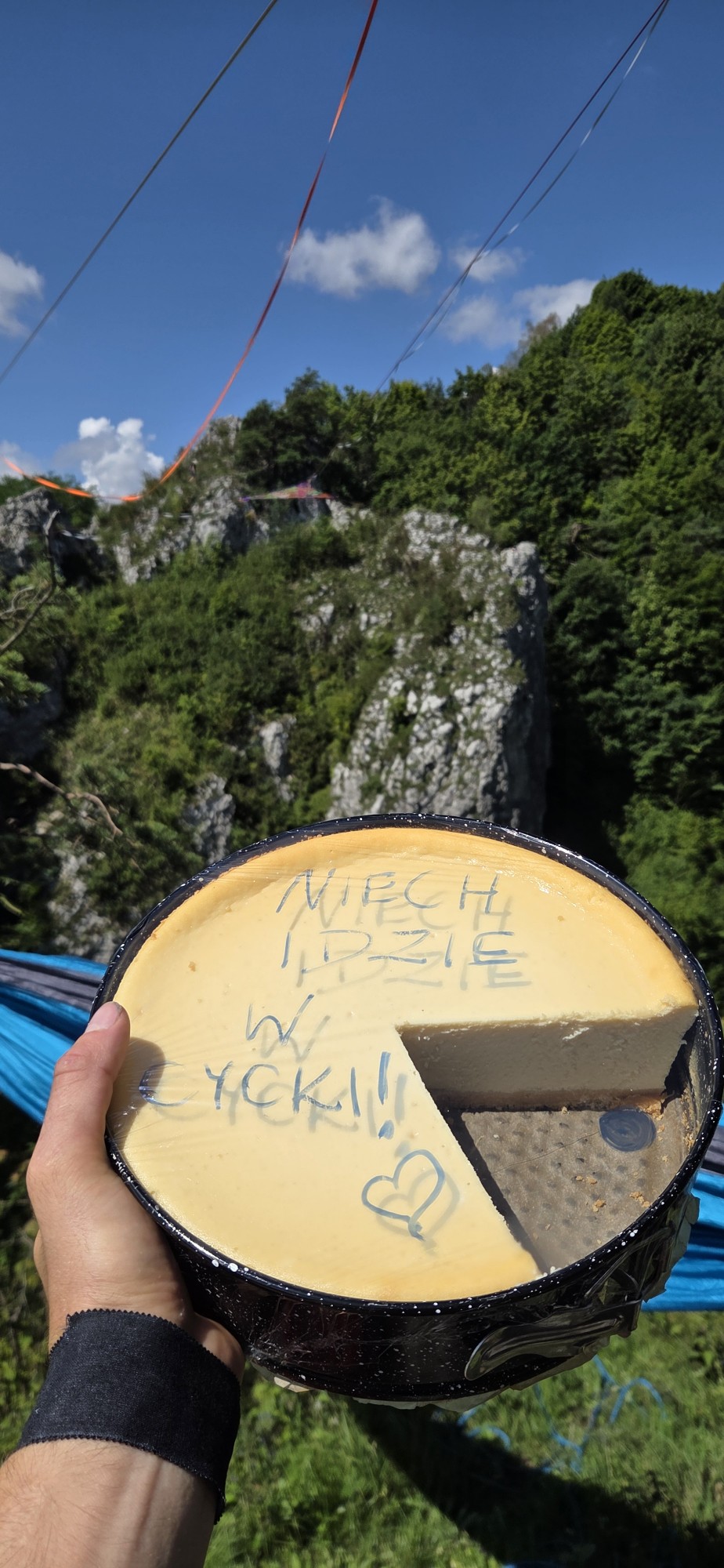 Przy okazji higline można też na przykład podwiesić sobie hamaczek na taśmie, co też raz zrobiliśmy w Bolechowicach.