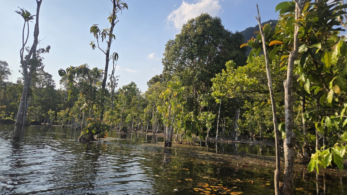 Nie chcieliśmy pływać, więc powiedzieliśmy naszemu przewodnikowi, że wracamy na początek, gdzie było rozlewisko i tam sobie popływamy. Ogólnie to ciężko się pływało, bo łatwo się było zawiesić na jakimś pniaku podwodnym i raz zajęło nam kilka minut zanim się odwiesiliśmy.