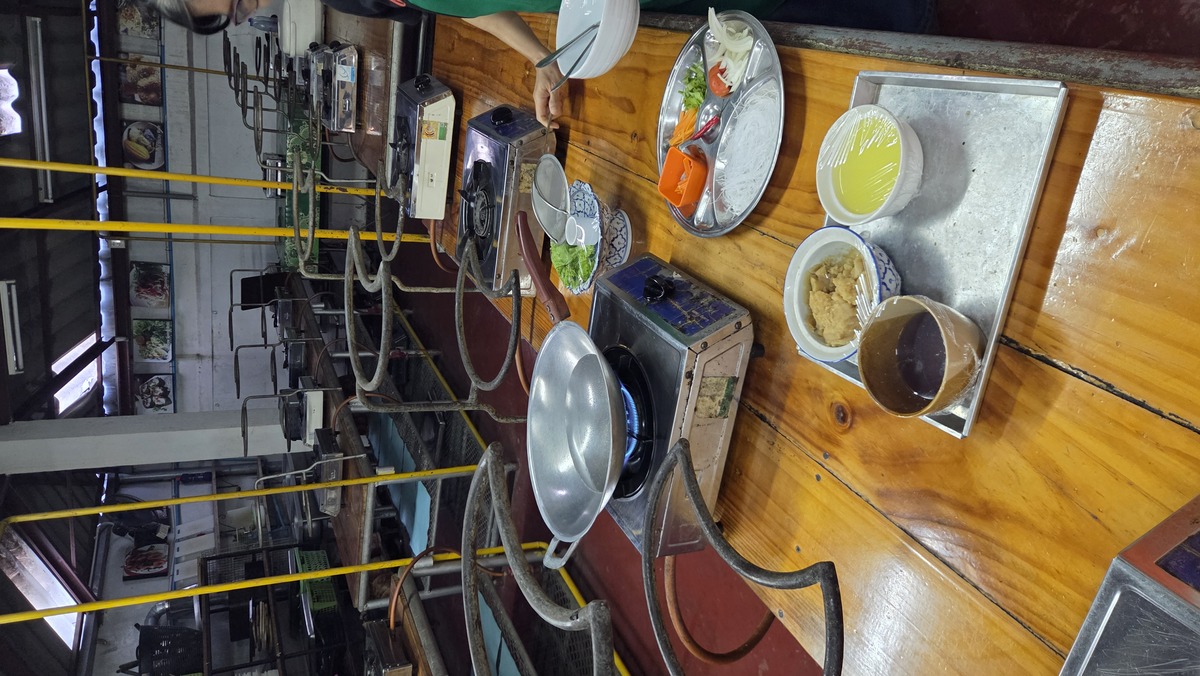 Zaczęliśmy od gotowania zup, które robiło się na to samo kopyto, z tą różnicą, że do mojej szło trochę pasty curry. Szczegóły muszę sobie przypomnieć z książki kucharskiej, ale po dodaniu wszystkich składników do mleczka kokosowego, odłożyliśmy nasze woki na stanowiska obok, żeby tam się spokojnie gotowały.
