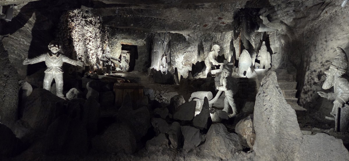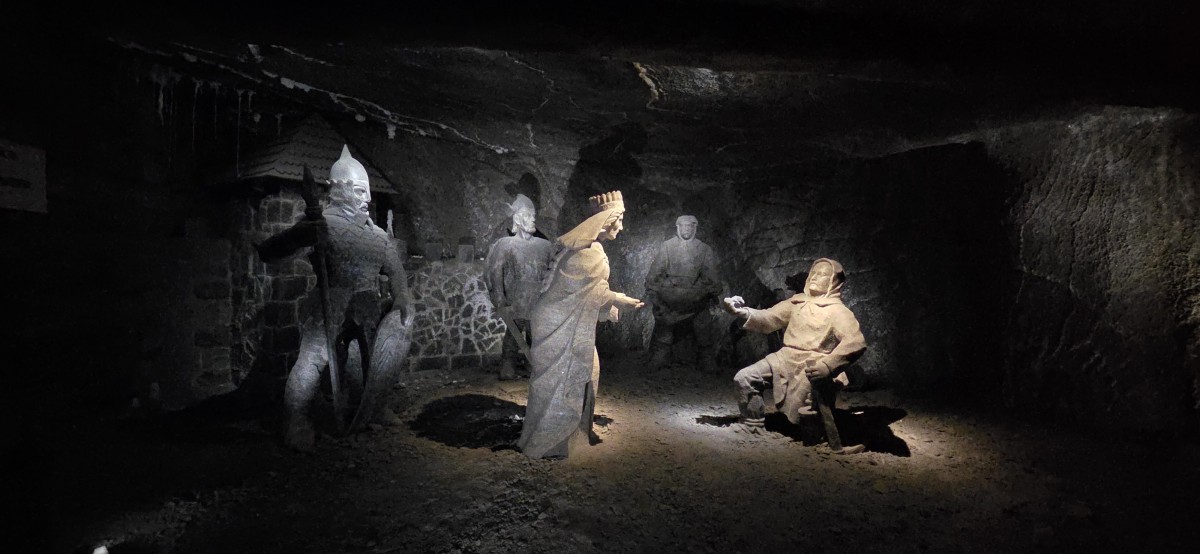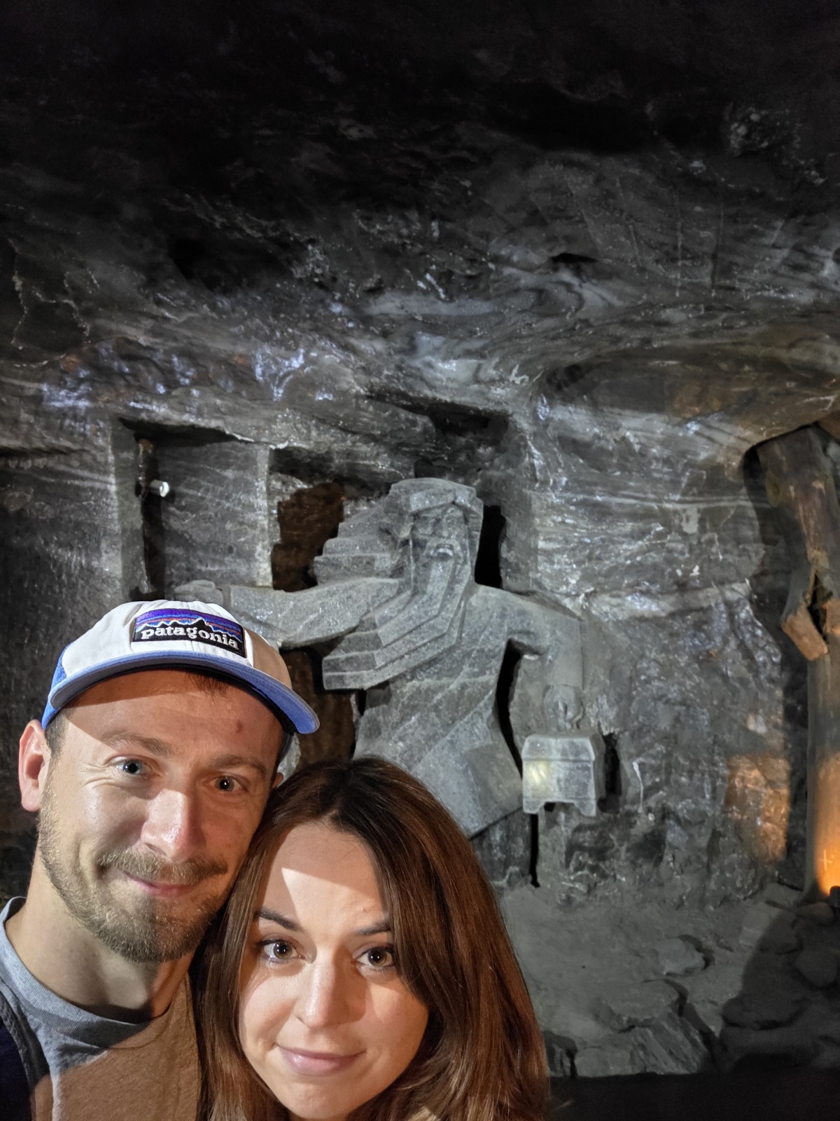 To była też pierwsza wycieczka z Magdą ❤️. Weszliśmy minuty po czasie, bo autobus się jej spóźnił, więc było trochę dodatkowego stresu na sam początek. Później schodziło się schodami na sam dół szybu. Korytarze były bardzo przestronne i w zasadzie wszystkie obudowane drewnem. Spodziewałem się, że będzie więcej surowej skały. Dużo było rzeźb solnych i scenek przedstawiających jak wyglądała praca w dawnych czasach. Były podziemne jeziorka i oczywiście grota świętej Kingi. Przy wyjściu były też jakieś pamiątkowe tablice z opisami i anegdotami z “Seksmisji”, która byłą tutaj kręcona.