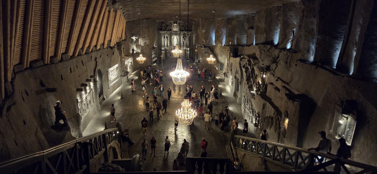 Zwiedzanie kopalni soli w Wieliczce. Spoko, chociaż jest bardzo turystycznie i nijak się ma do wycieczki po kopalni srebra w Boliwii. Kilka grot skalnych z rzeźbami solnymi połączone długimi korytarzami. Chociaz jak tak teraz myślę i przeglądam zdjęcia to imponujące to było.