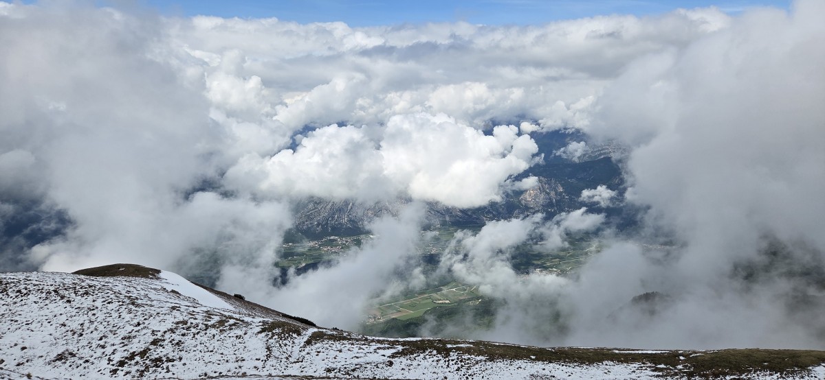 Poszliśmy sobie jednego dnia na ferrate. Było mokro, padał deszcz i przez to nie było jakichś rewelacyjnych widoków, ale można było przejść przez bunkier w środku góry, było dużo śniegu i spomiędzy chmur prześwitywały czasem widoczki.
