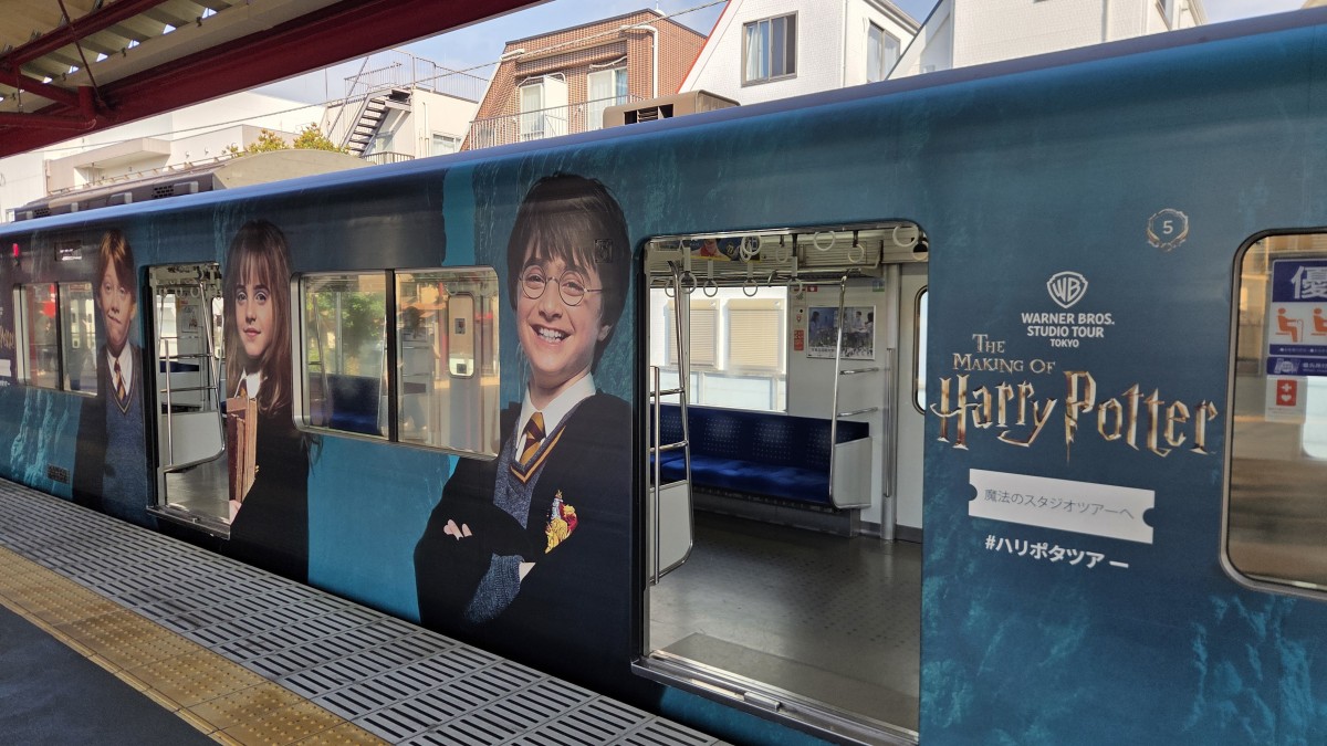 Nasz 24h bilet na metro nie obejmuje stacji z Harrym Potterem, więc próbujemy jakoś przykombinować, żeby część pojechać metrem a ostatni przystanek pociągiem. Kiedy wysiadamy na stacji przesiadkowej, mija nas pociąg obklejony postaciami z filmu. Czekamy na następny, wsiadamy i dojeżdżamy do stacji docelowej. Tutaj bramki nas nie wypuszczają, ale dopłacamy różnicę i idziemy w stronę parku.