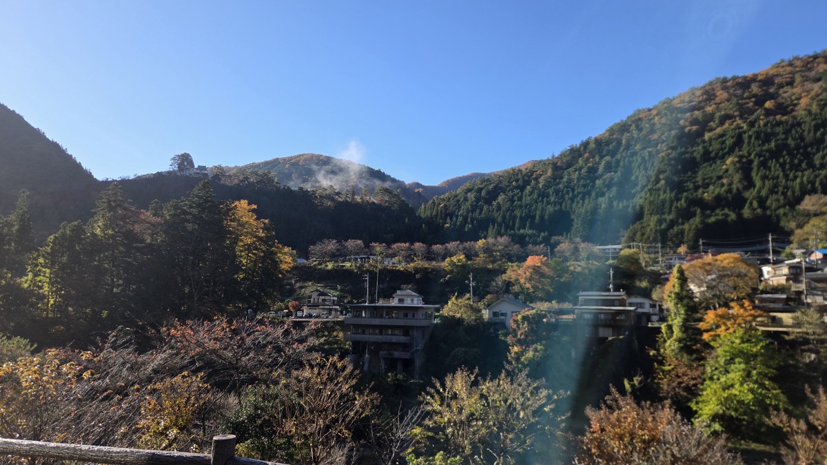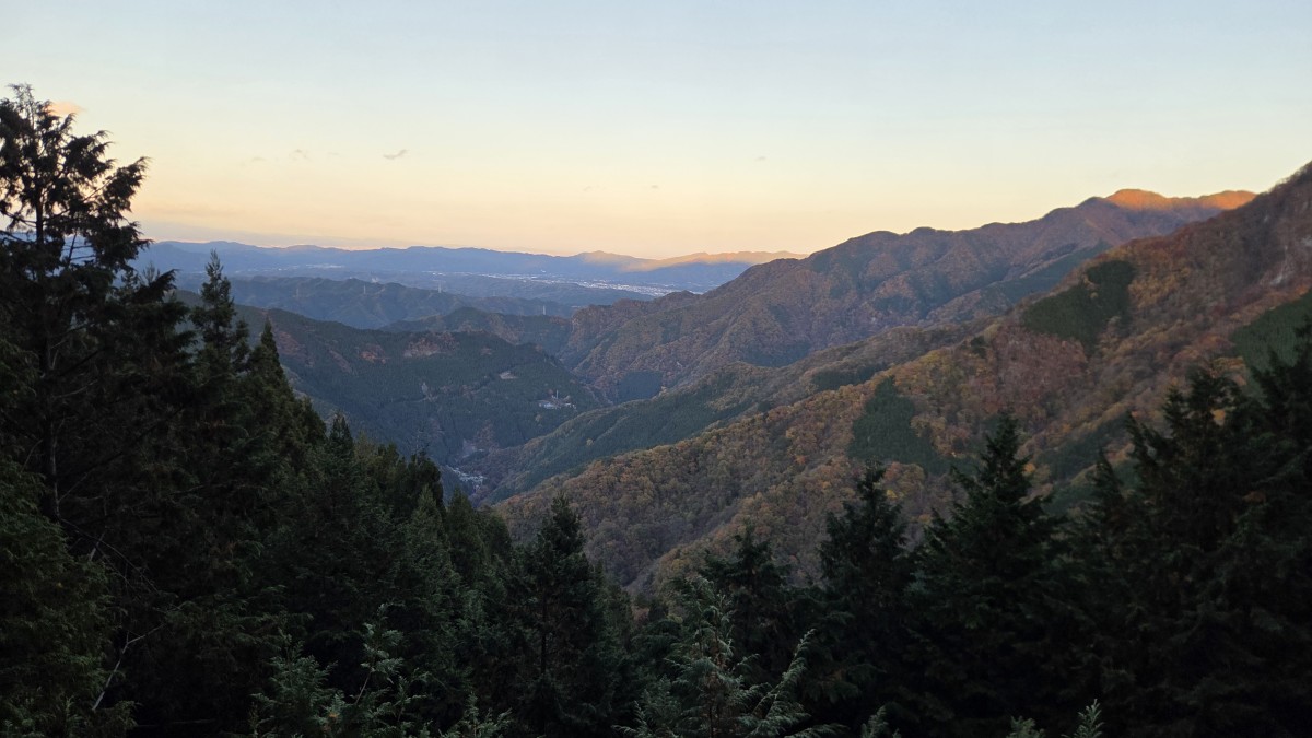 Dzień wcześniej ustaliliśmy, że pomijamy Mitake i jedziemy w kierunku Mitsumine. W obydwu miejscach znajdują się świątynie, ale ta druga jest bardziej dzika i trudniej się do niej dostać bez auta, a w dodatku była bardziej po drodze. Jadąc kręta górską drogą, nagle pokazała się nam góra Fuji wyrastająca ponad wzgórza. Widok był tak zachwycający i niespodziewany, że skwitowałem go tylko słowami “o kurwa” 🤣