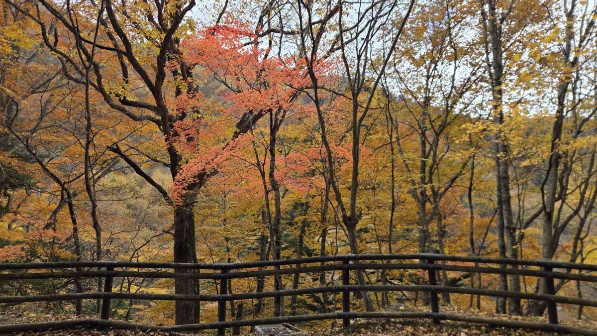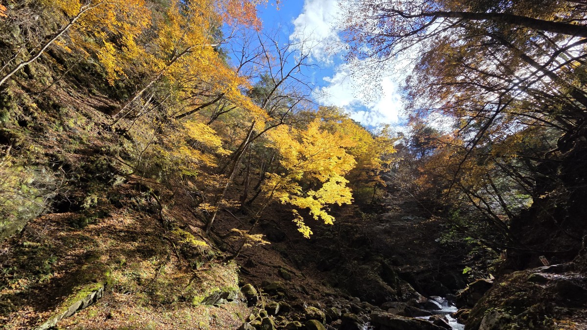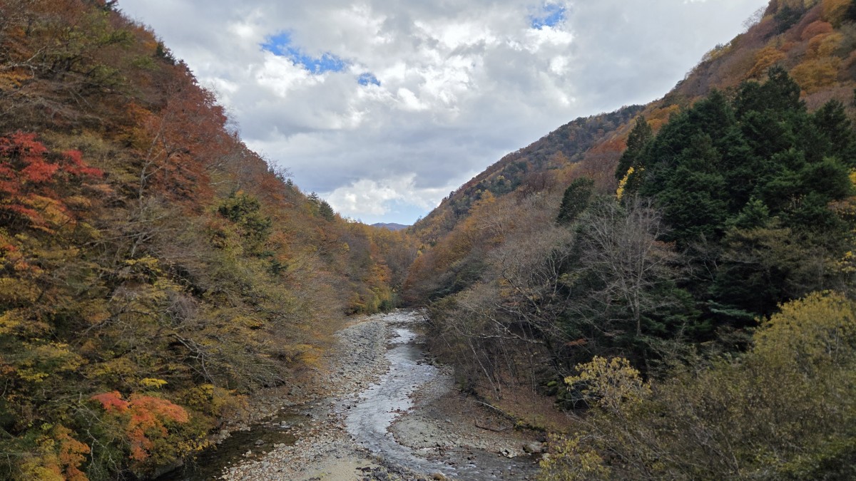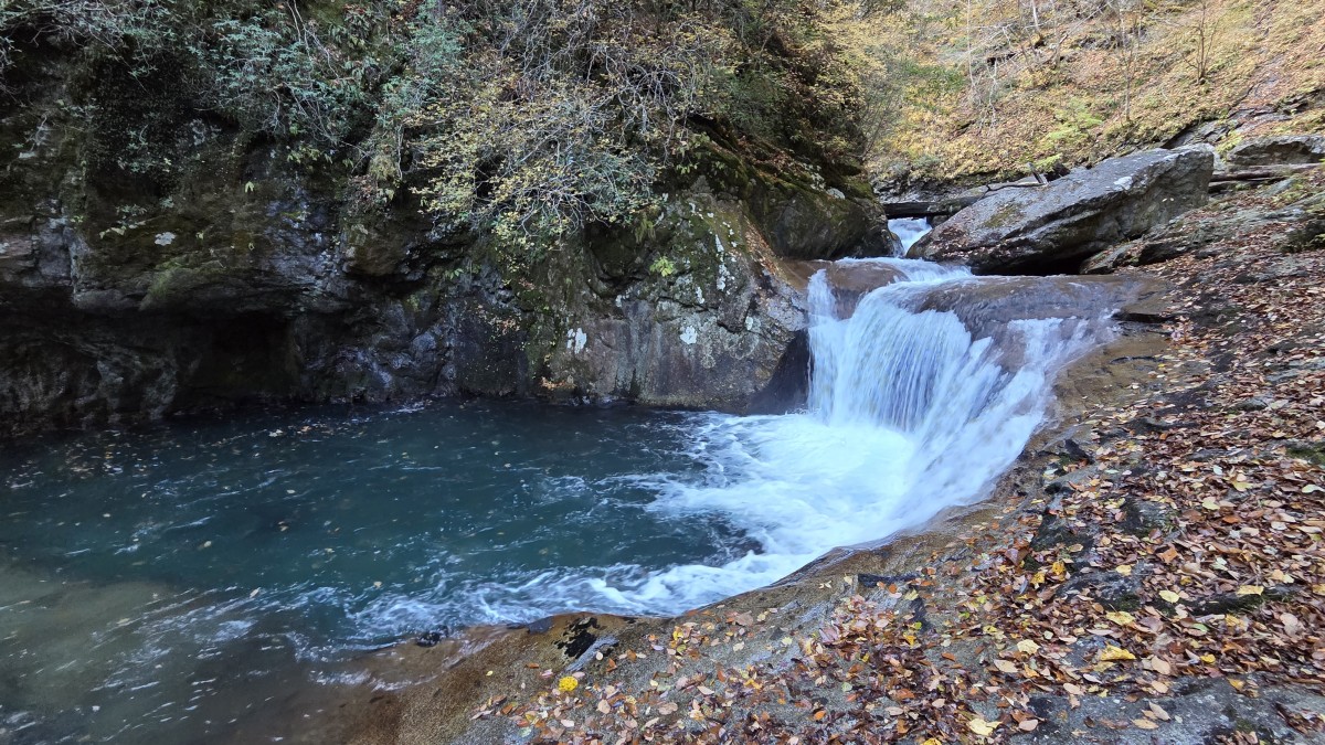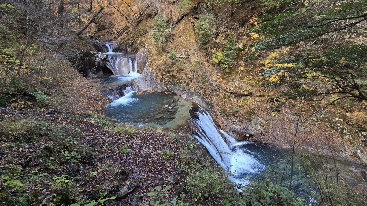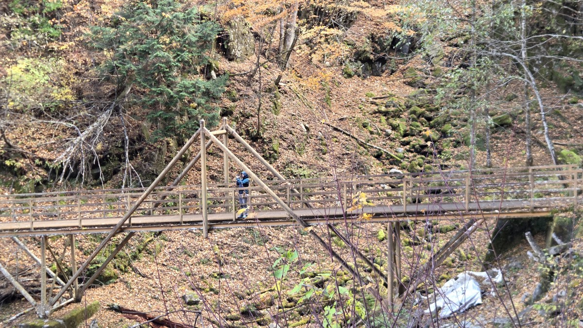 Po drodze zatrzymaliśmy się na treking po kanionie Nishizawa i to był strzał w dziesiątkę. Połowa pętli biegła przy rzece, gdzie było pełno wodospadów, do tego kolorowe jesienne liście dopełniały krajoobrazu. Na szlaku były zainstalowane łańcuchy, które pomagały przy śliskich fragmentach, ale szlak nie był trudny. Kiedy zobaczyłem zdjęcia w toalecie, z kanioningu jak mi się wydaje, miałem pewne obawy czy damy radę i czy nie władowaliśmy się w coś trudniejszego. Na szlaku były też podwieszane mosty, które tak dalikatnie się bujały, kiedy zaczynało się na nich podskakiwać.