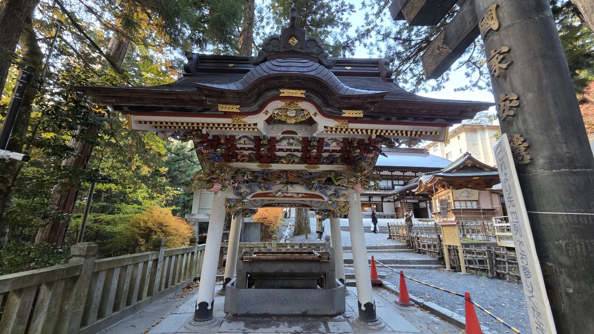 Pojechaliśmy tam płatnym tunelem i krętymi górskimi ścieżkami. Jest to świątynia wilków. Nie zagłębiałem się w wierzenia japońskie, więc nie mam tutaj nic ciekawego do napisania co to znaczy, ale zrobiła na mnie duże wrażenie. Znajduje się w lesie na szczycie wzgórze. Ciekawe dla mnie jest to, że same świątynie nie są jakieś duże, ale zazwyczaj otoczone są parkami albo terenami zielonymi o dużej powierzchni. Takim buforem, pomiędzy sacrum a profanum.