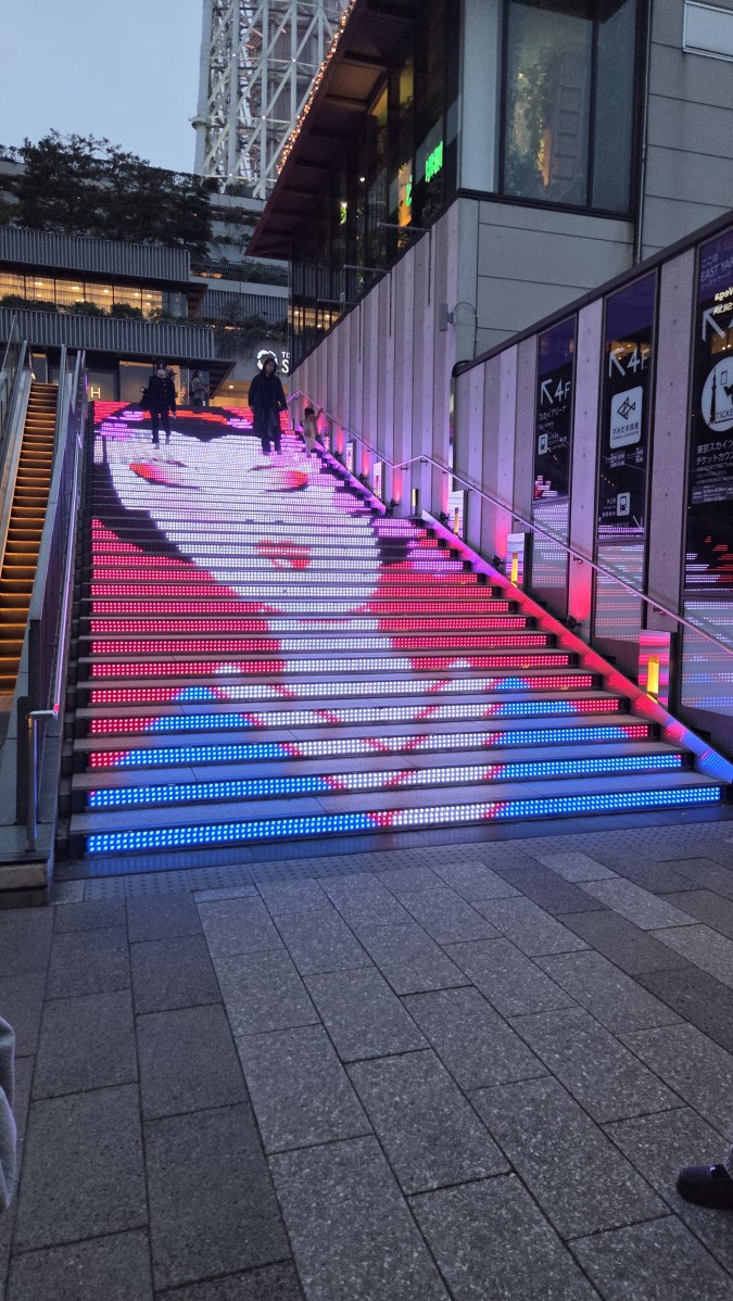 Umówiliśmy się z moim znajomych na kolację na ramen, a później podszedłem z nim na punkt widokowy, na którym byłem rano. Na tym samym budynku była też wyświetlana animacja i robiło to duże wrażenie. Było kilka różnych, na przykład w tematyce pac-mana czy smoka. Nie obejrzeliśmy wszystkich, ale fajnie, że się udaje czasem przypadkowo trafić na takie rzeczy.