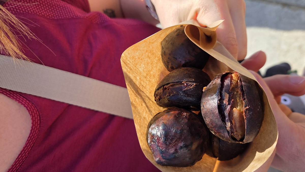 Dzień tranzytowy i to jaki. Dwie najbliższe noce spędzimy w transporcie. Rano zostawiamy rzeczy w hotelu, na szczęście nie trzeba było szukać przechowalni bagażu. Jedziemy do świątyni w Osace, gdzie odbywa się comiesięczny targ. Ja jestem średnio zainteresowany, więc trochę uzupełniam bloga gdzieś na boku. Dzisiaj wejście na teren świątyni jest darmowe, więc robię jakieś fotki, a w momencie kiedy mieliśmy jechać na śniadanie, to zaczynają się jakieś modlitwy, więc chwilę zostajemy, żeby popatrzeć. Mnich przenosi coś z zamkniętej skrzyneczki na środek, a później zaczyna się modlić. Forma, to takie rytmiczne zawodzenie pod jednostajną muzykę z bębna.