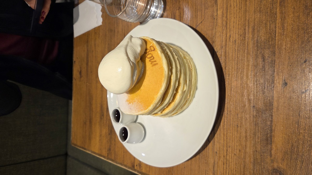 Jedziemy coś zjeść, coś czyli naleśniki. Chodziły za mną od kilku dni. Można kupić tutaj w sklepach naleśniki z syropem klonowym i margaryną, ale chciałem zobaczyć jak wyglądają takie ciepłe, świeże. Były troszeczkę suche, ale smaczne 😊
