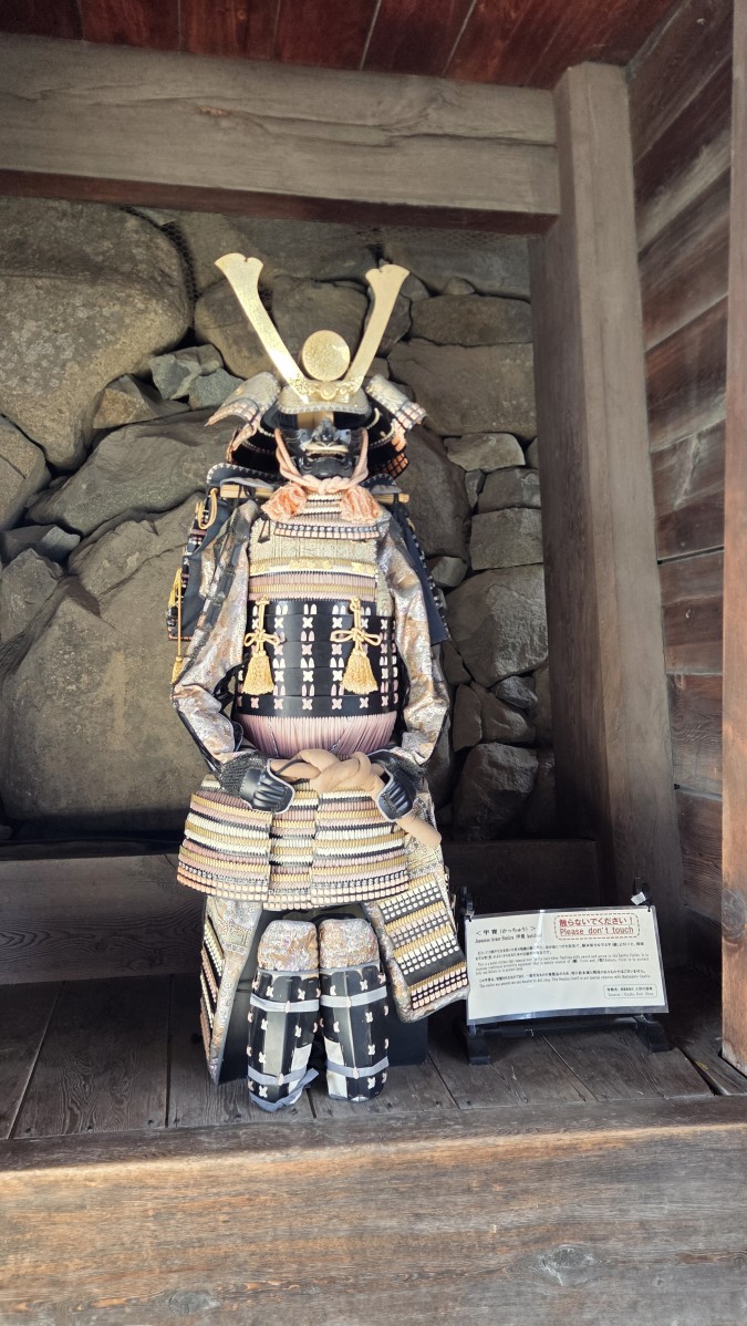 Dzisiaj zaczęliśmy dzień od zamku w Matsumoto. Bardzo ładnie wygląda z zewnątrz, ale w środku tak sobie. Przed wejściem trzeba zdjąć buty, a w środku było bardzo zimno. Zimno i ładnie, ale tak jakoś surowo. Ogólnie to piętra były puste i opis kilku z nich sprowadzał sie do stwierdzenia, że nie wiadomo jakie było ich przeznaczenie. Zamek w środku składa się w całości z drewna. Pięknie wypolerowany parkiet przez setki lat chodzenia na boso. Schody, które były pomiędzy piętrami opisałby jako drewniane drabino-schody. Stopnie były czasem bardzo wysokie (do 40 cm wysokości) i trzeba było też uważać na głowę. Piętra były bardzo przestrzenne, bo miały po jakieś 4 metry do sufitu. Jedyne co było w tym zamku, oprócz samego zamku to wystawa broni palnej używanej w dawnych czasach, głównie z poczatków jej rozwoju. Spoko eksponaty, ale jak dla mnie to wszystkie takie same.